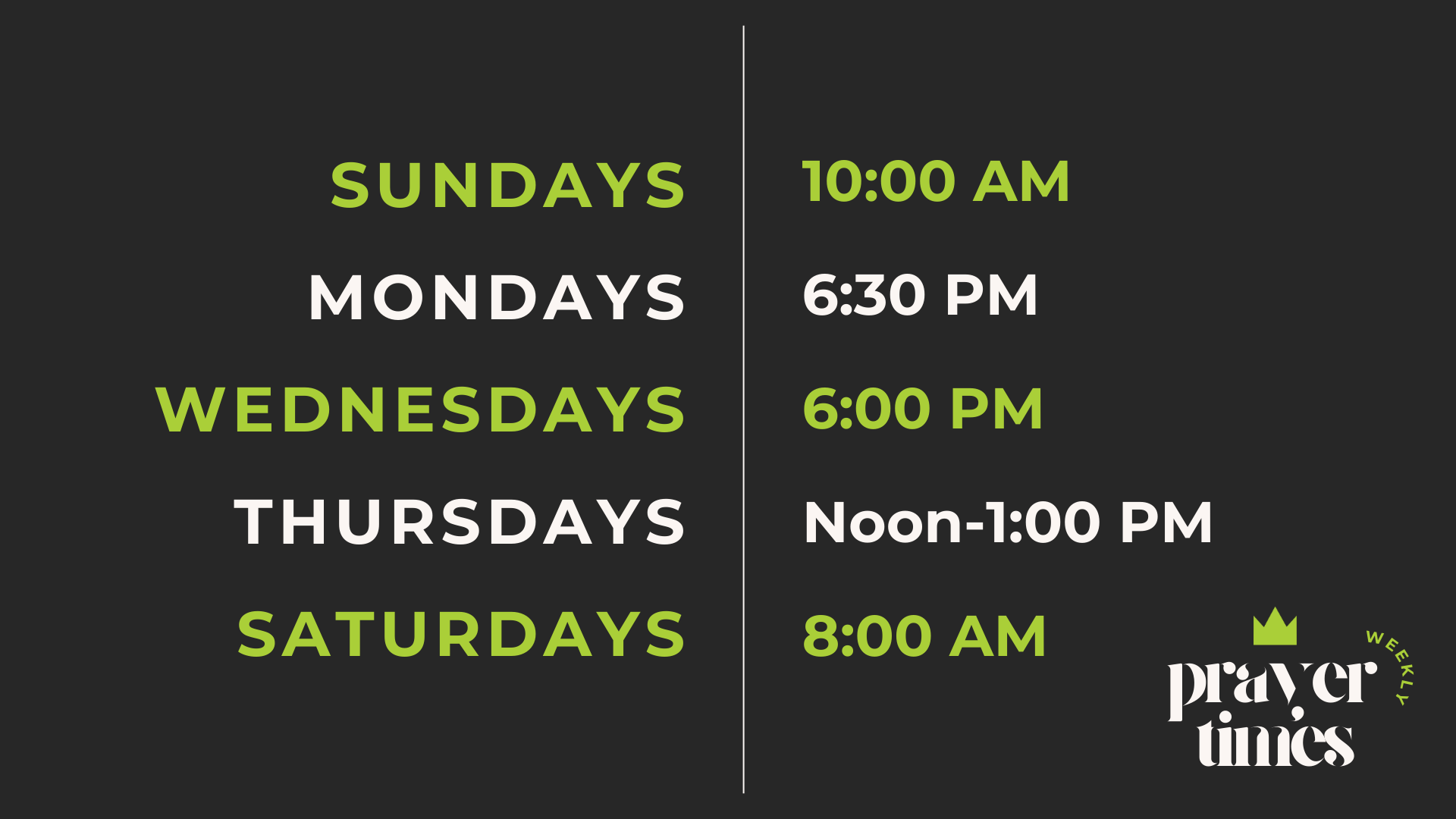 Thursday's - 12:00 - 1:00 pm (Prayer Room)